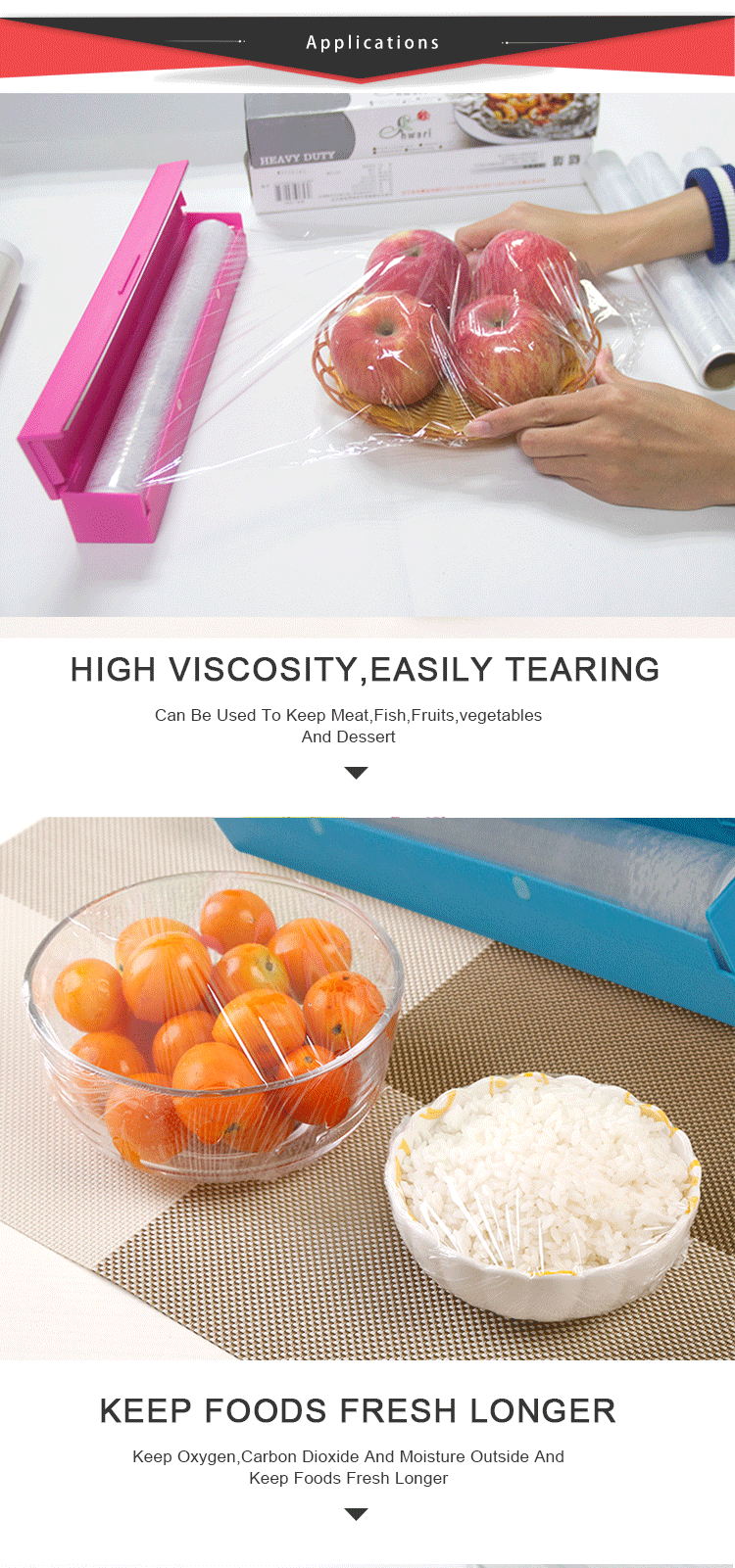This cling wrap is easy to handle and tear, making it ideal for wrapping fruits, vegetables, meat, and leftovers. The superior stretch and cling properties help reduce waste while enhancing food hygiene and presentation.