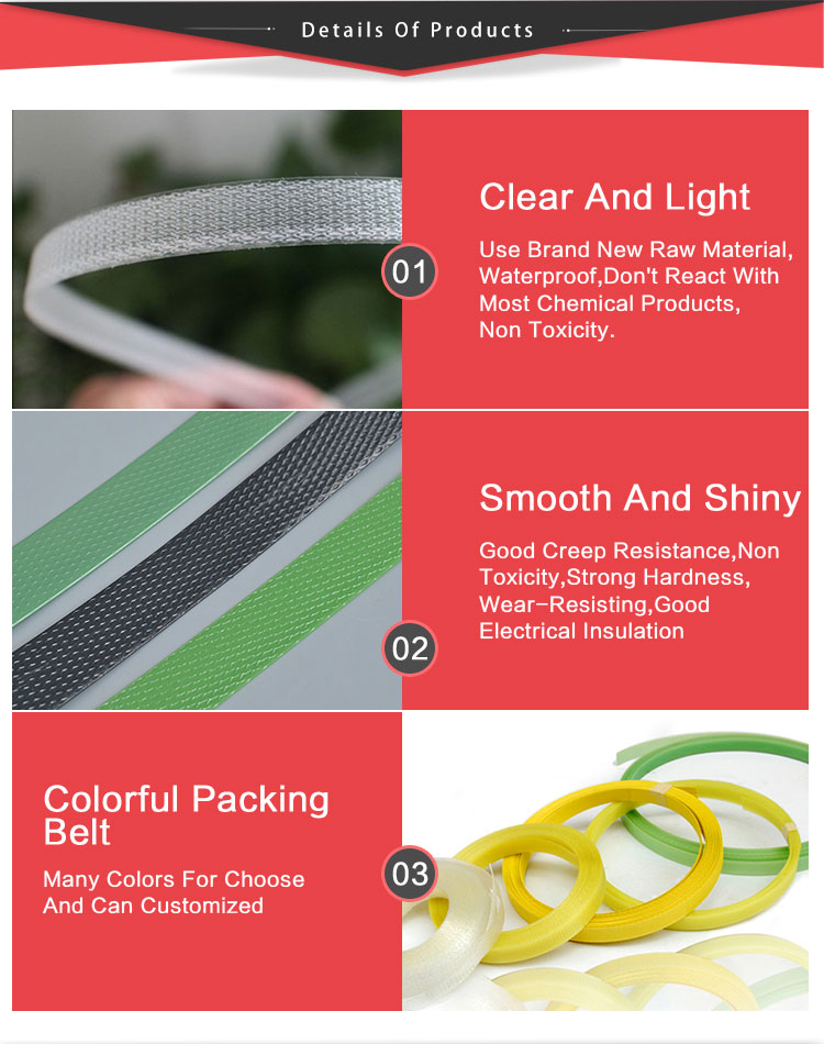 The PET plastic strapping is known for its high tensile strength and flexibility, providing superior load retention and ensuring that your packages are well-protected. It also has excellent resistance to abrasion, weathering, and UV degradation, making it suitable for a wide range of industries, including logistics, warehousing, and transportation.